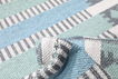 100% plastic where plastic straps are woven together and create rugs that are very durable and require minimal maintenance. Use mild detergent to remove any stains or wash at 30°C without any spinning cycle or tumble drying.